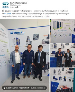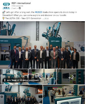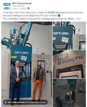 Nuestros visitantes pudieron asistir a demostraciones de funcionamiento de nuestras máquinas en directo , informarse sobre nuestras inyectoras EPG horizontales eléctricas, nuestras soluciones de compresión y Rotocure y hablar directamente con nuestros expertos.